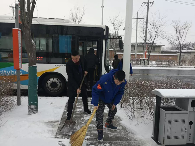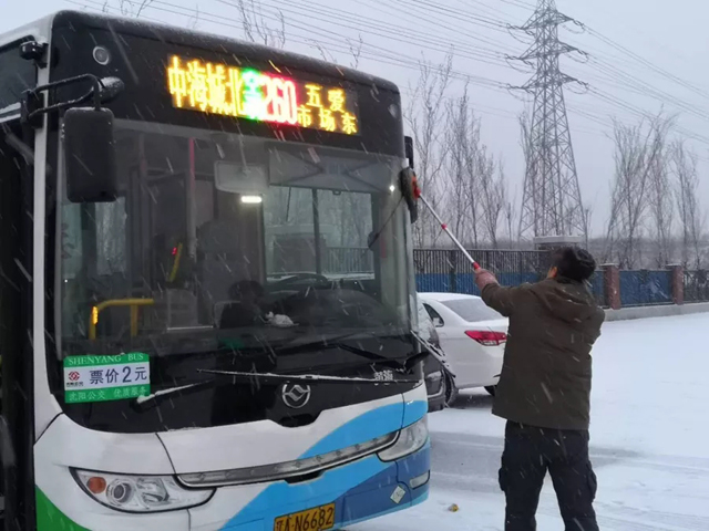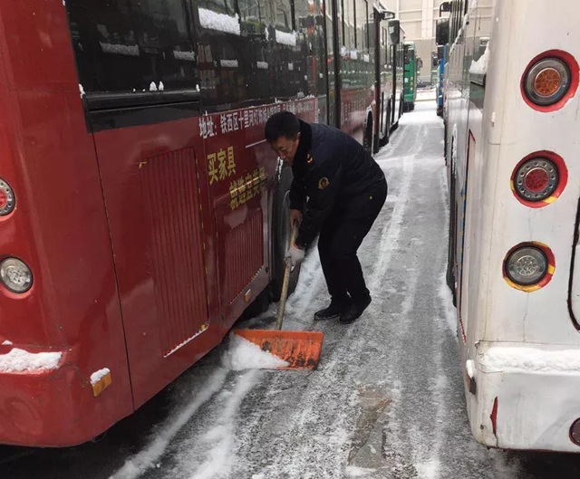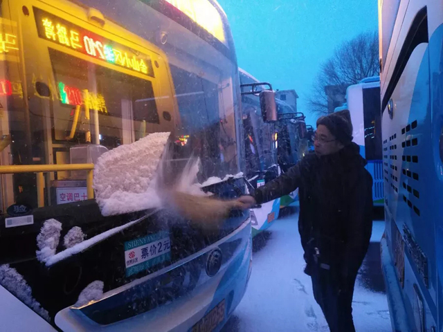 2019年2月15日、19日沈城兩次降雪,每一次的雨雪天氣的來襲,都是對全體一線公交人都是嚴(yán)峻的考驗(yàn)。面對惡劣天氣,各單位多項(xiàng)舉措在雨雪中連夜奮戰(zhàn),干部職工上下一心,紛紛提前到崗,清理場區(qū)、站區(qū)、車輛積雪,做好出車前的各項(xiàng)例行檢查,全力保障市民安全出行。大家不畏嚴(yán)寒、齊心協(xié)力、配合默契,忙碌的身影在雪天里形成了一道最亮麗的風(fēng)景線。