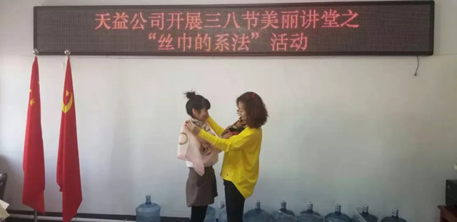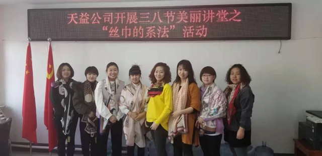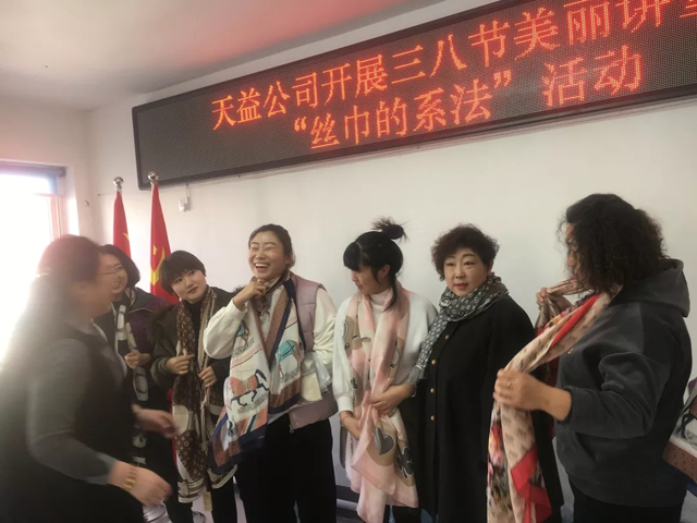 3月8日上午,天益公司舉辦了慶?!叭斯?jié),絲巾造型歡樂賽”活動,向偉大而無私奉獻的女性同志們致以節(jié)日的問候。