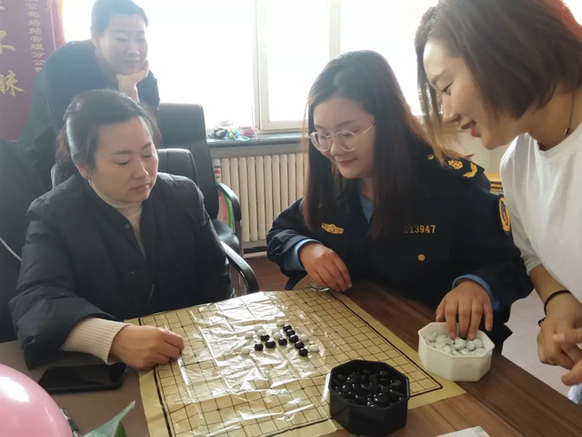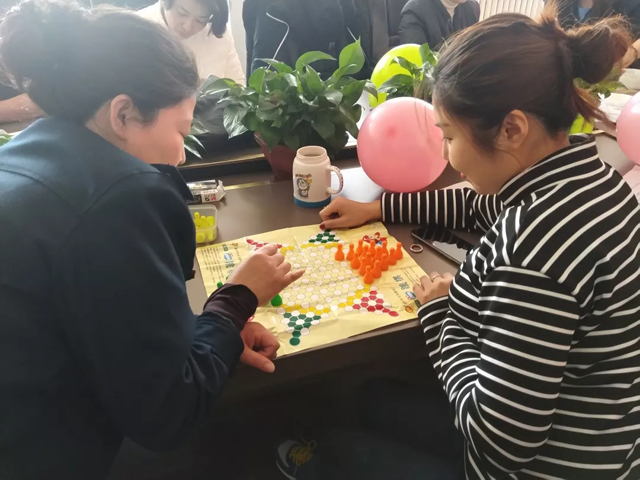 講座之后場站公司女職工分為兩組進行趣味運動會,比賽項目設(shè)有:呼啦圈比賽、跳繩比賽、撲克四沖、五子棋比賽、跳棋比賽。