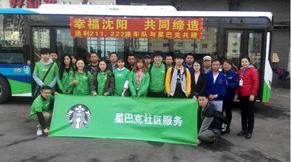 圖為: 211、222路車(chē)隊(duì)黨支部與星巴克開(kāi)展“幸福沈陽(yáng),共同締造”主題共建活動(dòng)。