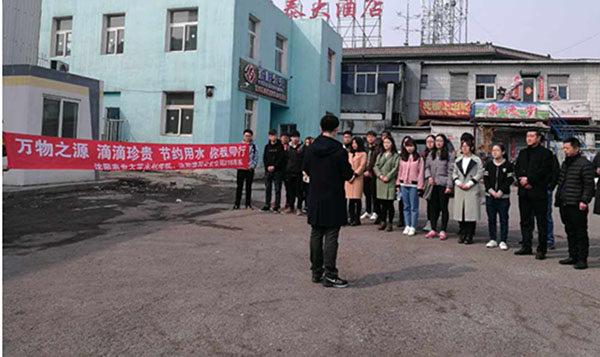 圖為:218路車(chē)隊(duì)黨支部與沈陽(yáng)農(nóng)業(yè)大學(xué)水利學(xué)院在218路終點(diǎn)站大東門(mén)廣場(chǎng)開(kāi)展宣傳《萬(wàn)物之源 滴滴珍貴 節(jié)約用水 你我同行》為主題的倡議儀式,農(nóng)大水利學(xué)院的學(xué)生在大東門(mén)廣場(chǎng)與車(chē)隊(duì)職工共同宣傳節(jié)約用水,人人做起,從點(diǎn)滴開(kāi)始。通過(guò)宣傳,讓大家了解節(jié)約用水的重要意義。
