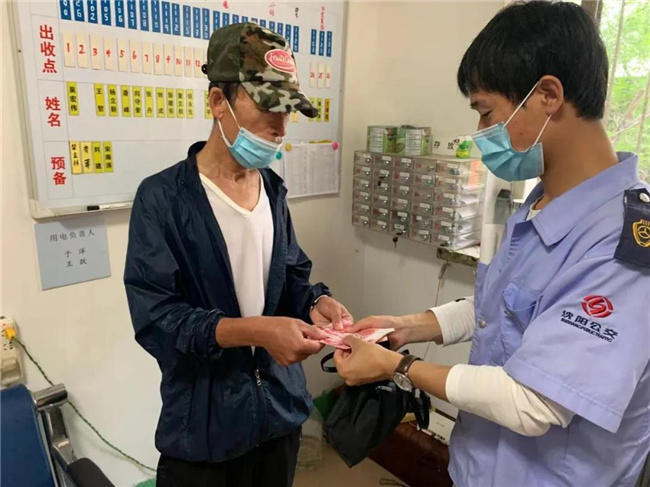 張恩勇?lián)睦先说纳眢w,關(guān)切的問道:“大爺,天氣這么熱,您要去哪啊?”老人有些語無倫次,一會兒說回渾南,一會說去沈北。張恩勇見老人異常,為防止其發(fā)生意外,便安排他在距離自己最近的座位上坐好,并安撫他不要下車。
