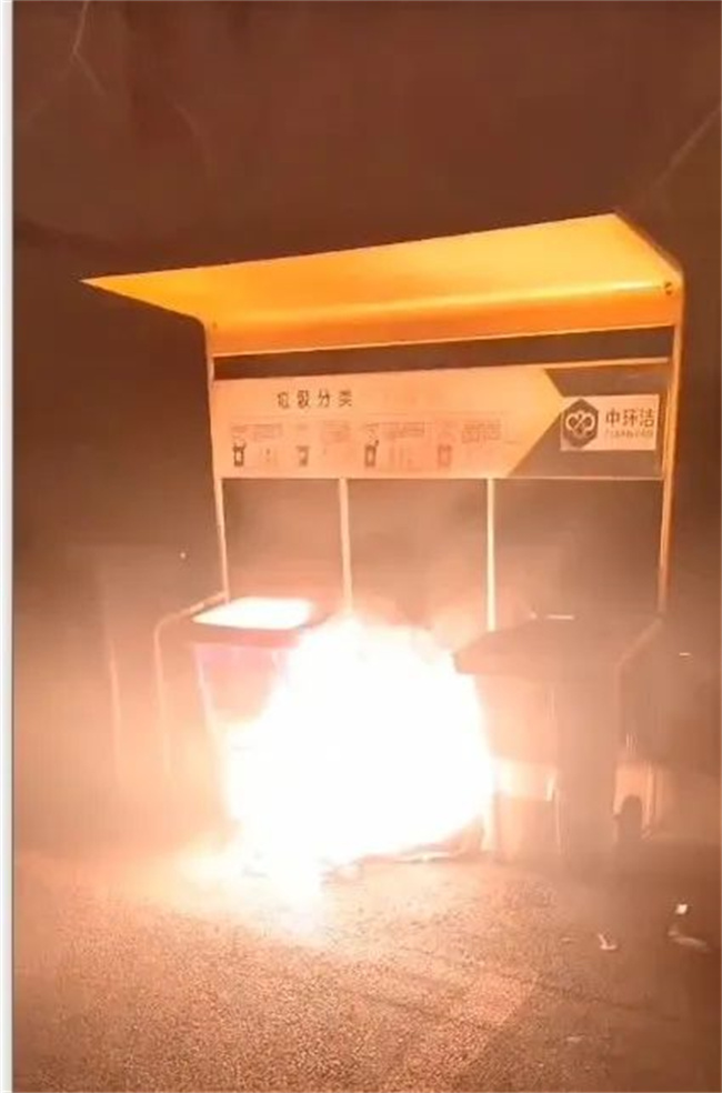 李輝立即跑出站務(wù)室,發(fā)現(xiàn)馬路對(duì)面的垃圾分類站中的垃圾桶正在燃燒,眼看火焰越燒越旺,李輝立即叫上夜勤人員穆懷東一同上前滅火。