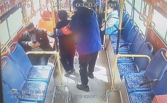 3月7日,賈清巖在艷粉新村始發(fā)站主動(dòng)幫助老人將購(gòu)物車抬上車,老人認(rèn)出了賈清巖,還沒等坐穩(wěn)就面帶笑容走向駕駛室向賈清巖表示誠(chéng)摯的感謝,賈清巖連忙起身攙扶老人回到座位。