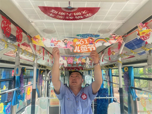 “六一”國際兒童節(jié)前夕,260路駕駛員繆立眾將自己駕駛的公交車精心裝扮一番,自費購買了許多小禮物,準備在兒童節(jié)當天送給乘坐公交車的小朋友,為他們帶來一份驚喜和快樂。