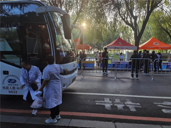 9月2日凌晨4時,華龍公司30臺旅游客車化身“工作人員接駁車”,踏著清晨的露珠分別趕赴沈陽工業(yè)大學、沈陽化工大學等各接站點,將志愿者及賽事保障人員運送至沈陽經(jīng)濟技術(shù)開發(fā)區(qū)比賽地點,隨后將他們依次送至設(shè)置在賽道上的各個計時點、醫(yī)療物資保障點、維保站及補給點。