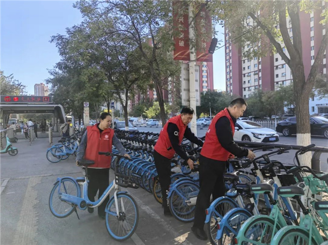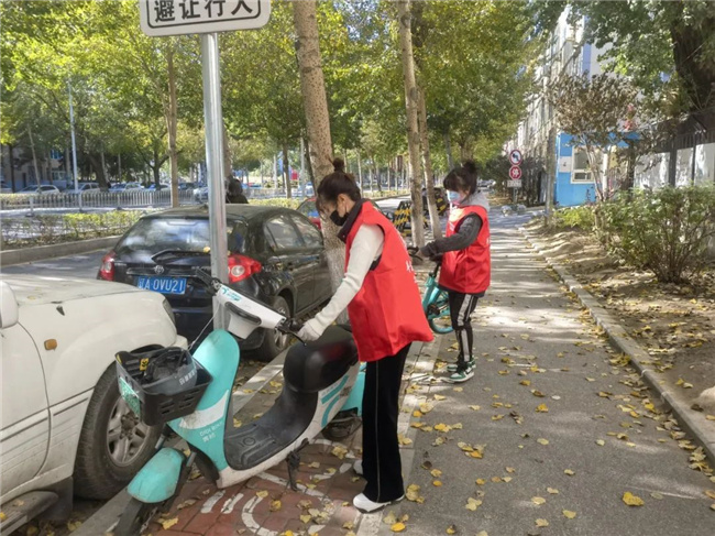 活動中,志愿者們身穿紅馬甲,拿著清掃工具來到活動地點,重點對社區(qū)道路、綠地、樓道車庫等公共區(qū)域進行清掃清潔,對住宅區(qū)內生活垃圾、亂堆雜物等進行徹底清理,對公共設施上小招貼和噴涂廣告進行清除,擺放零散無序的共享單車。