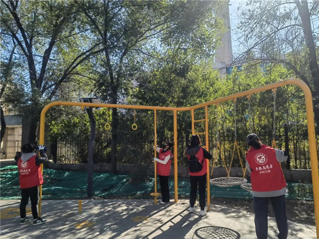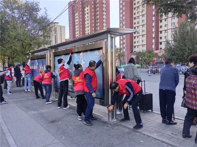 活動中,大家充分發(fā)揚“不怕臟、不怕累”的奉獻精神,對車站的隔離護欄、侯車亭站牌及公園內健身器材擦拭干凈,將路邊停放的共享單車擺放整齊,并清掃路邊落葉,用實際行動使周邊環(huán)境面貌煥然一新。