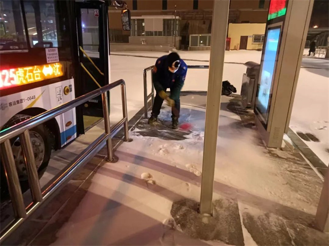 沈陽客運(yùn)集團(tuán)各運(yùn)營單位及時啟動應(yīng)急預(yù)案,各車隊(duì)管理人員與駕駛員提前到崗,清除場區(qū)及候車?yán)确e雪,做好運(yùn)營前車輛安全檢查,提前預(yù)熱車輛,保證車內(nèi)溫度達(dá)標(biāo),為乘客提供安全溫暖舒適的乘車環(huán)境。各線路隊(duì)長在發(fā)車前囑咐好每位駕駛員做到安全行車,小心慢行,注意瞭望。