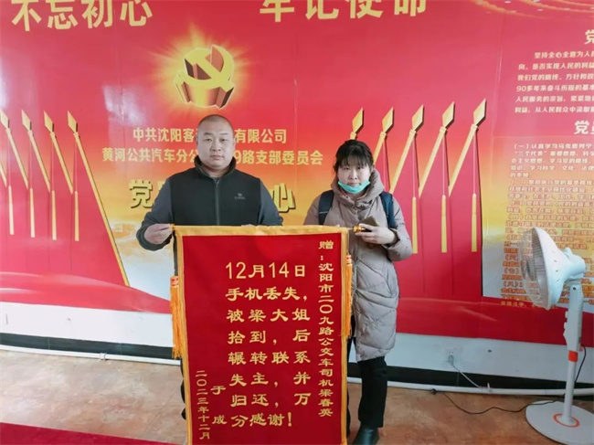 這部價(jià)值5000多元的手機(jī)失而復(fù)得,失主于女士非常開心,為表感激之情,趁著元旦假期,于女士將一面錦旗送到了209路車隊(duì)。