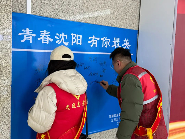大家以飽滿的熱情向廣大乘客提供引導咨詢、秩序維護、扶老攜幼等志愿服務,用自己的實際行動讓外地來沈旅客感受到了“沈陽溫度”。