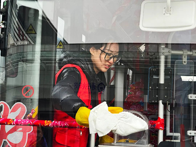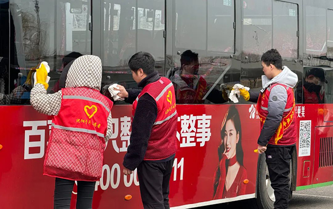 活動開始后,團員青年及志愿者在簽名板上寫下了自己的名字,以此響應號召成為新時代雷鋒精神的傳播者、弘揚者和踐行者。團員青年及志愿者佩戴“我是雷鋒”標識胸牌,并對沈陽南站樞紐站進行大清掃活動,清理車內(nèi)外衛(wèi)生,擦亮沈陽窗口,樹立公交新形象。