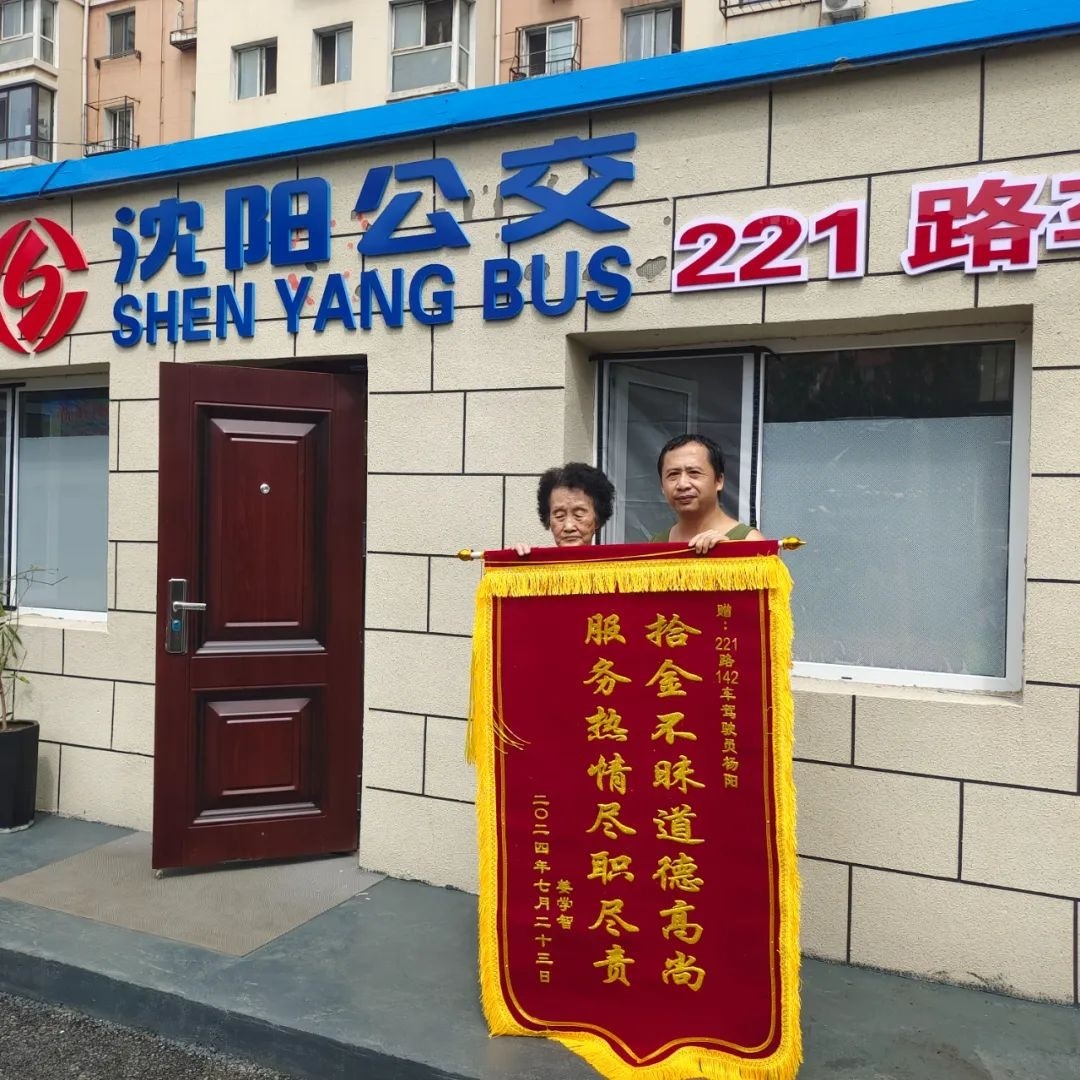 第二天一早,老人帶著自己的兒子再次來到了221路站務室,將“拾金不昧道德高尚 服務熱情盡職盡責”的錦旗親手交到隊長手中,再次向車隊和楊陽表達自己的謝意。