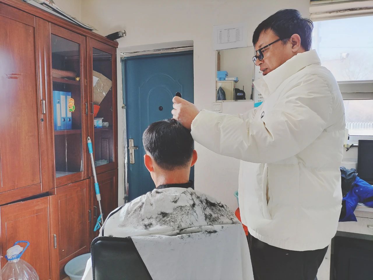 志愿者們分工合作,有的為老人們理發(fā),有的和老人們聊天,拉家常,有的幫老人整理內(nèi)務(wù)。李大爺在理完發(fā)后看著鏡子里的自己,笑得合不攏嘴,連連稱贊:“這手藝真棒,你們太貼心啦!”王大娘看到自己原本雜亂的房間變得明亮又溫暖,激動(dòng)地說:“謝謝你們,真的太感謝了!讓我這屋子煥然一新?!?/p>
