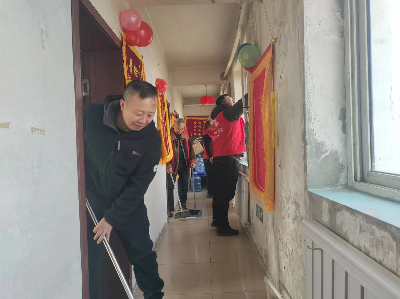 志愿者們忙碌的身影在養(yǎng)老院里穿梭,雖然大家都忙得滿頭大汗,但沒有一個(gè)人喊累??粗先藗兡樕涎笠绲男θ荩驹刚邆冃睦镆渤錆M了成就感。