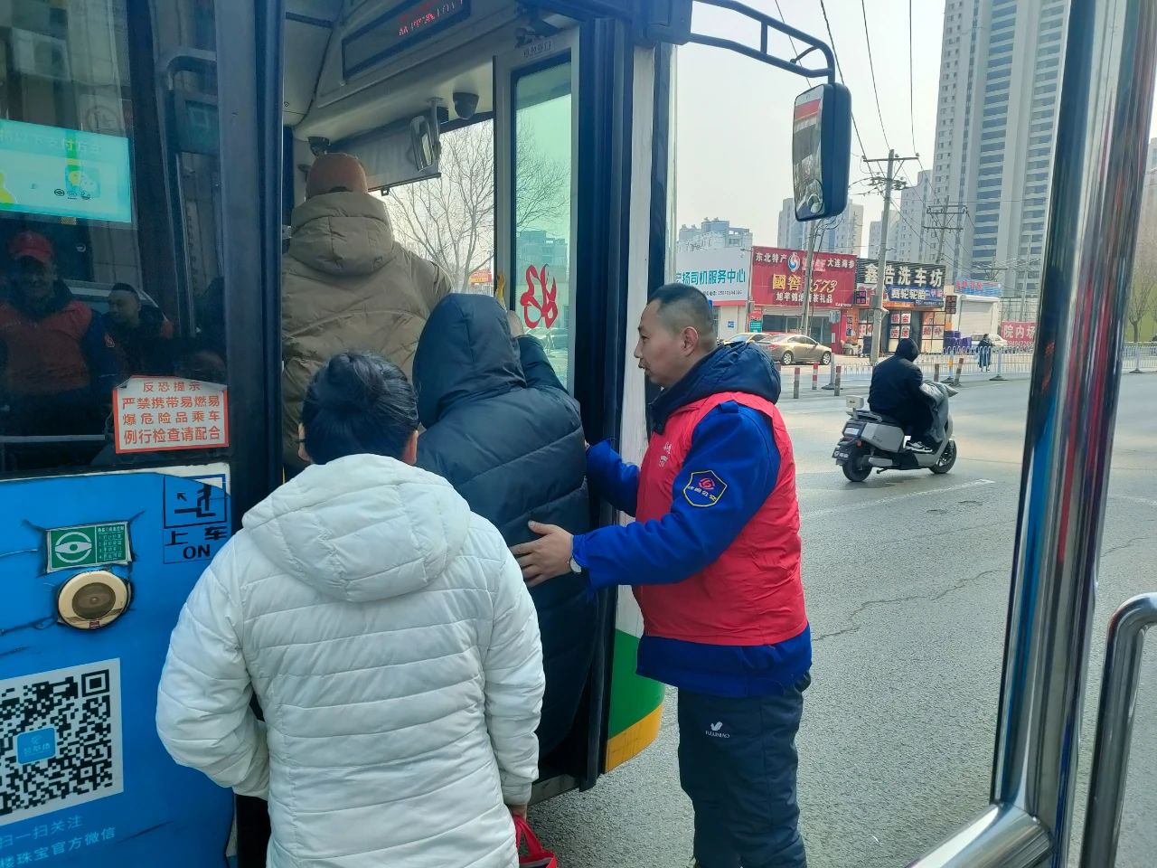 身披紅色綬帶的志愿者們熱情滿滿,為乘客提供咨詢引導(dǎo)服務(wù),耐心解答各類出行疑問,幫助公交站點(diǎn)進(jìn)行環(huán)境升級(jí)。