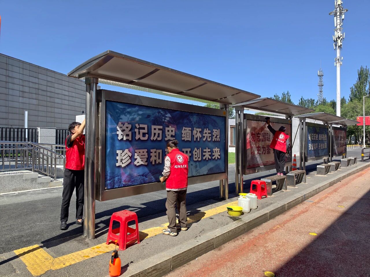 場(chǎng)站公司精心遴選了一批以“銘記歷史,勿忘國(guó)恥”為主題的公益畫面,覆蓋望花南街、崇山東路等市內(nèi)多個(gè)主要路段候車亭。此次煥新工作累計(jì)出動(dòng)15人次,共更換公益畫90幅。