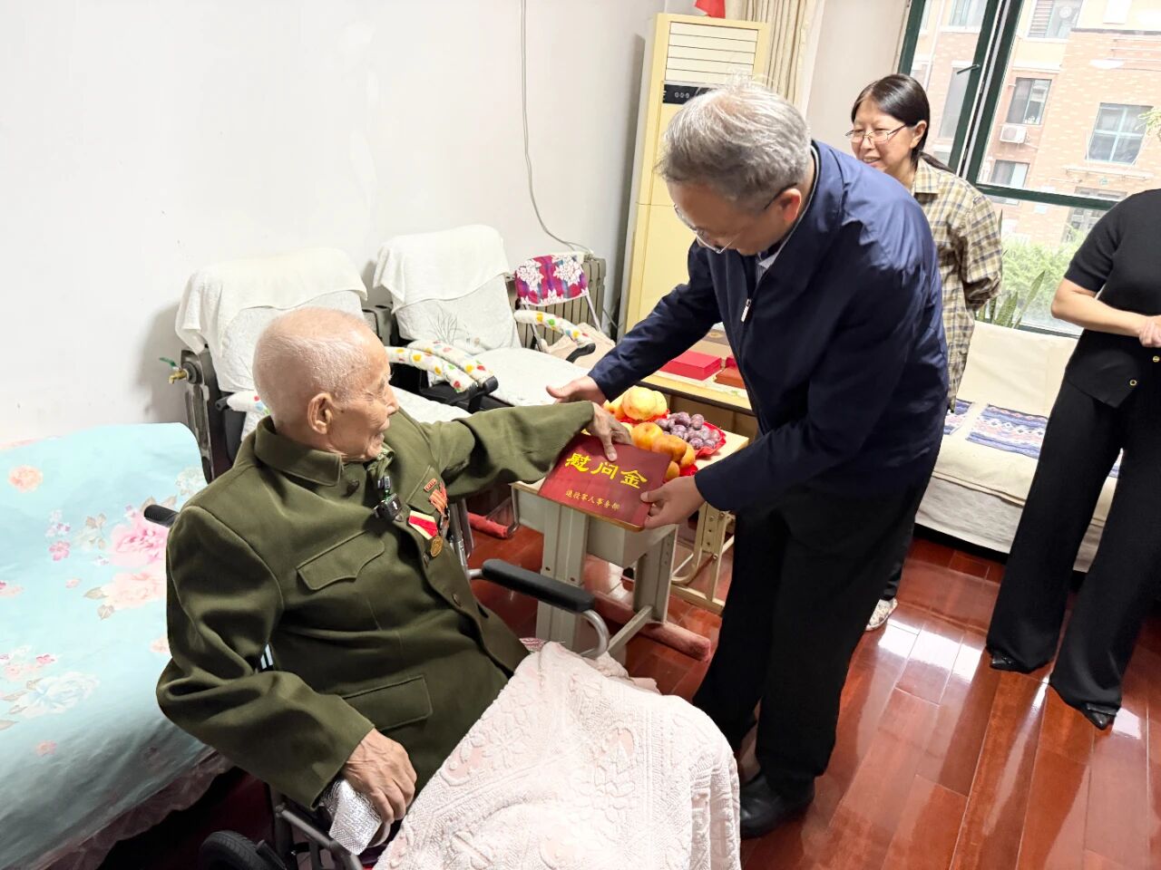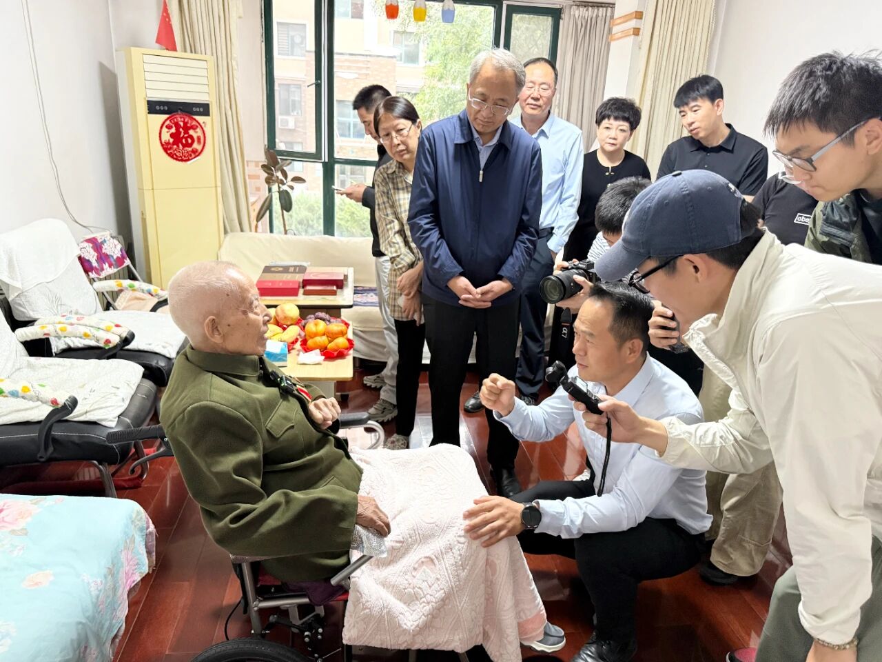 9月22日,第三屆退役軍人事務(wù)領(lǐng)域網(wǎng)絡(luò)正能量基層行活動(dòng)慰問組一行,專程來到原沈陽電車公司勞服公司黨總支書記、工會(huì)主席韓宗森同志家中,看望慰問這位革命老前輩。
