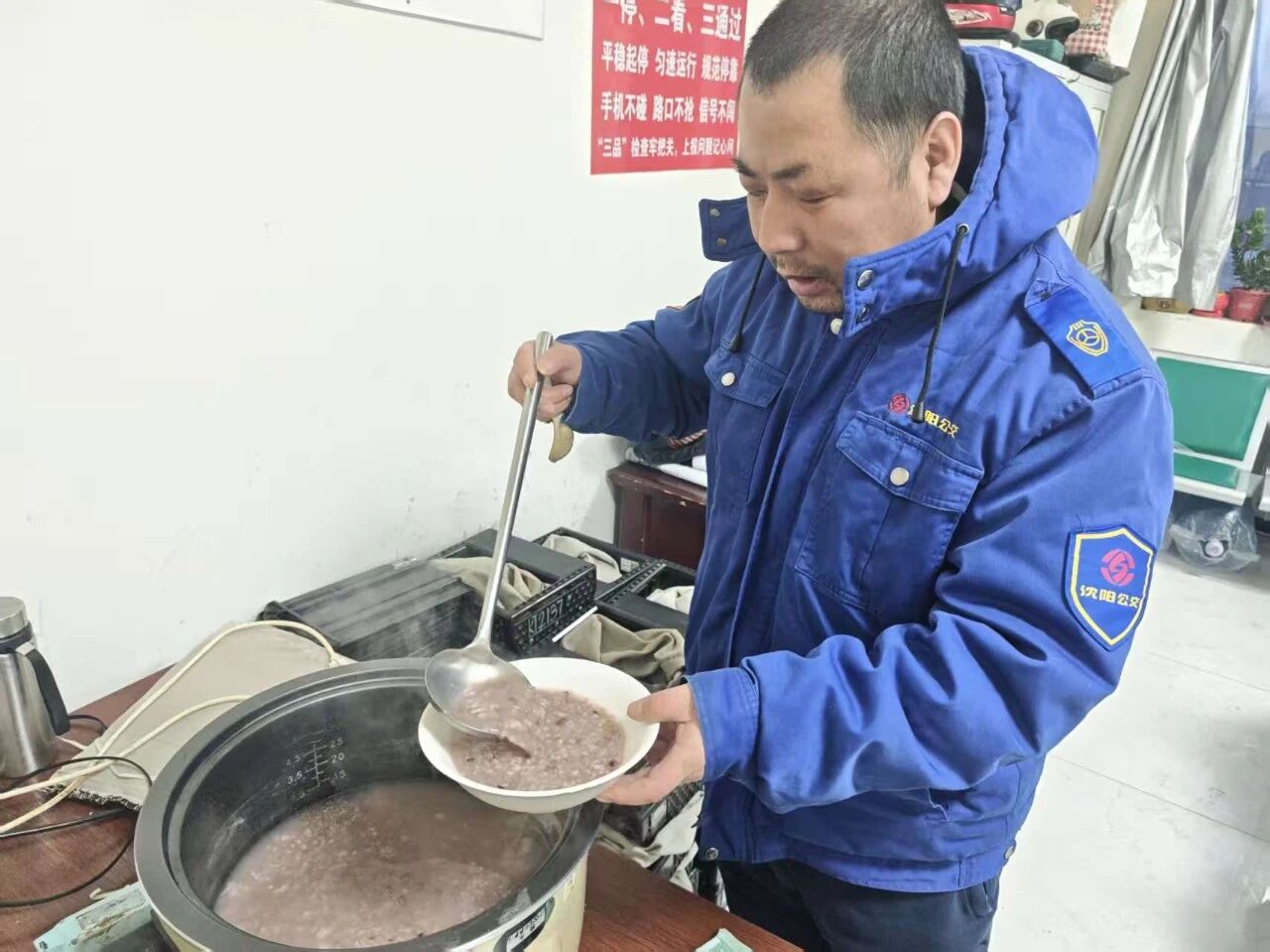 接過粥碗,熱氣順著手心蔓延,駕駛員們笑意融融。一碗粥下肚,不僅驅(qū)散了凌晨的冷意,更熨帖了身心。車隊管理人員也借此機會,細細叮囑:冬日行車,注意保暖,穩(wěn)駕慢行,務(wù)必把安全放在首位,以飽滿的精神迎接每一位乘客。
