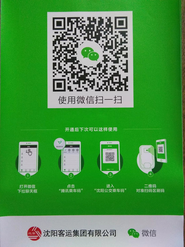 騰訊乘車碼是一種可用來(lái)乘坐交通工具、適用于多個(gè)交通場(chǎng)景的二維碼,是基于微信小程序開發(fā)的服務(wù)。用戶首次搜索“騰訊乘車碼”小程序,選定“沈陽(yáng)市”開通乘車碼后,“沈陽(yáng)公交乘車碼”會(huì)自動(dòng)加入卡包。再次使用時(shí)進(jìn)入微信,下拉聊天框選擇“騰訊乘車碼”小程序進(jìn)入,即可快速使用“沈陽(yáng)公交乘車碼”。在公交場(chǎng)景實(shí)現(xiàn)快速通行與便利支付,僅用0.2秒就可極速、脫網(wǎng)驗(yàn)證,達(dá)到“先乘車,后付費(fèi)” 的便捷出行服務(wù)。