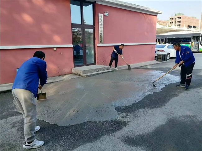 10月11日,沈蘇、鑫暢公司130路車隊(duì)開展“振興新突破,我要當(dāng)先鋒”活動(dòng),對(duì)場(chǎng)區(qū)南側(cè)的路面大坑進(jìn)行了清理及修復(fù)。