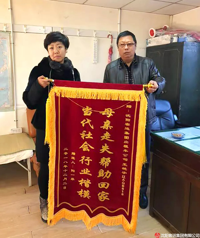12月6日,走失老人家屬將一面寫有“母親走失幫助回家 當代社會行業(yè)楷?!钡腻\旗送到公司,公司才了解王艷宇所做的善舉。